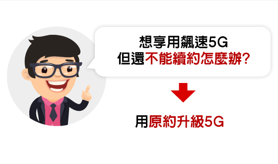 - 5G 網速體驗需搭配支援 5G 服務之終端設備。原約升級後,依各資費加贈新 5G 創新服務免費體驗。