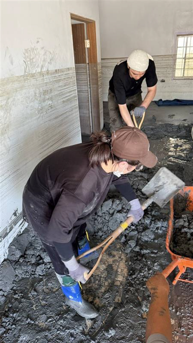 遠傳花蓮門市同仁主動前往災區現場,化身「鏟子超人」,協助災區清理工作,將溫暖與實際行動帶進災區。(圖片來源:遠傳FET)