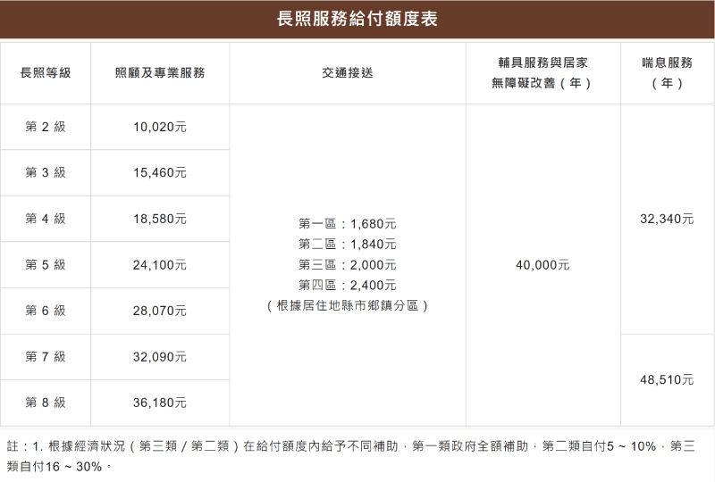 長照服務給付額度表(圖片來源:衛福部長照專區)