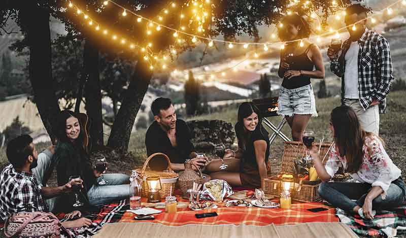 與dress code一樣,確保野餐布置風格可以從野餐籃、野餐墊、餐具、食物風格做主題發想。例如紅白格紋的野餐墊就非常適合熱鬧的田園蔬果沙拉與健康輕食。而白色Party就能採用編織麻布野餐墊以及手感風格強烈一點的佈置來強調波希米亞有點狂野的自然風格。別忘了試著在野餐時帶上一束美麗的鮮花,也能讓整體佈置更顯優雅!如果會一路玩到傍晚,也不妨嘗試用小燈泡串或是蠟燭來增添氣氛吧!