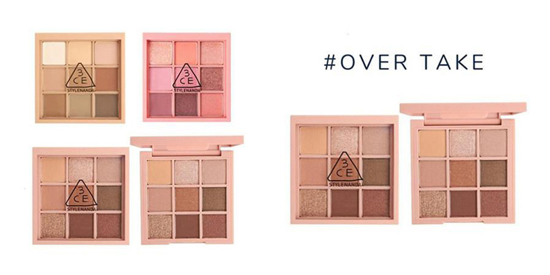 3CE 九宮格眼影盤 #OVERTAKE#SMOOTHER#BEACH MUSE,799元。(這裡買)(圖片來源:遠傳friDay購物)