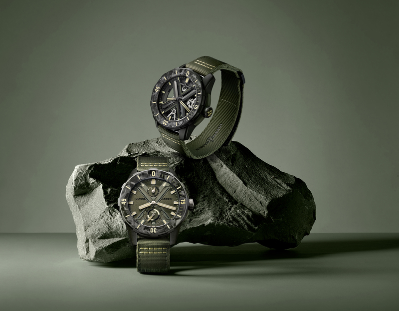 雅典錶全新潛水系列DIVER NET腕錶OPS款堪稱當今市面上最具永續性,並搭載品牌自製機芯的高性能運動腕錶。腕錶防水深度達300米,採用UN-118自動上鍊機芯,具備60小時動力儲存,配備矽質游絲。新款腕錶所採用的Carbonium碳正離子材料皆為飛機部件的邊角料製成,生產過程中所產生的環境影響相比其他碳複合材料低40%。這種獨特材質還具有大理石般的流動紋理,賦予單向旋轉錶圈獨一無二的美感。