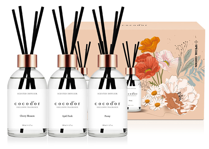 就算每天在家,也要幫媽媽營造一個美好舒適的家中環境,透過擴香可以為一成不變的家,創造四季不同氛圍。春神來了,來點春天的味道吧。而cocodor花漾年華擴香採用韓國產的高品質香料,搭配單純天然穀物發酵的植物性酒精,使用起來又舒服安心。