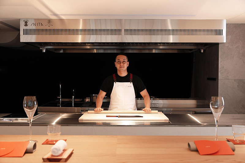 「INITA」是源自Italia、Nippon、Taiwan三個國家所創造出來的名字,是影響日籍主廚萩本郡大(Kunihiro Hagimoto)的料理發展重要養分來源。出生於日本大阪,曾任職義大利米其林一星餐廳Ristorante Tokuyoshi等地,接著被派遣到台灣駐點後,居然在此遇見了真命天女而留下。流著大阪人幽默血液的Kuniさん,將歡樂氛圍帶進向來嚴謹印象的Fine Dining餐廳,以結合三地的料理概念,邊料理邊演出,讓享用餐點的同時,彷彿看了一場主廚為主角的劇場演出。