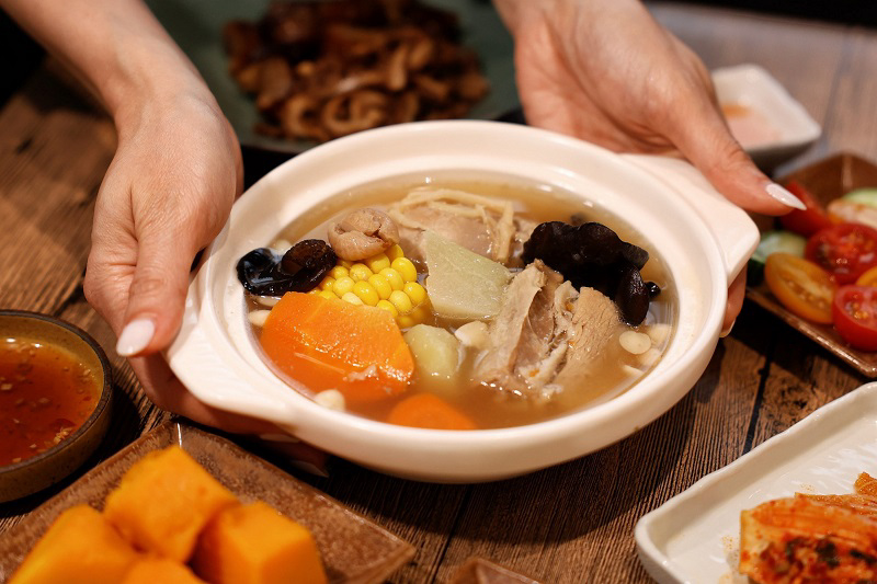 想來點清爽的湯品,這款以佛手瓜、水果玉米、川耳、紅蘿蔔,搭配玉竹、沙參、南北杏及無花果乾,與本地豬腩排、豬腱燉煮二小時的湯,非常適合。每一口都是清甜底韻,而玉竹與沙參疊加了溫潤層次。