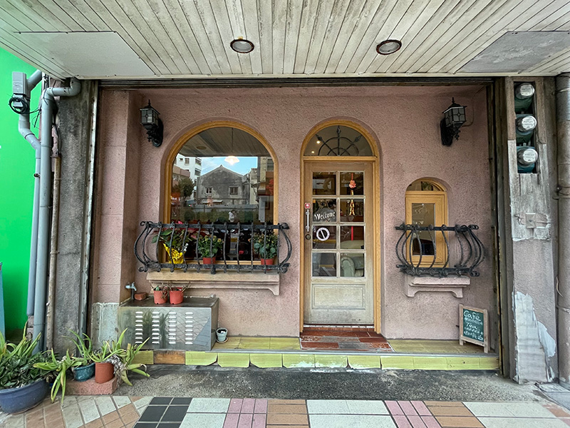 在全聯顯目的招牌對比下顯得格外可愛的風信子咖啡館,是棟略帶歐洲鄉村風的兩層樓建築,行經人行道時,一樓淡粉的牆色與圓弧形門框、鍛造窗框的設計,飄散著可愛氣息,往上抬頭一看,二樓外牆還有以英文Hyacinth Coffee立體標示的店名,在當年的澎湖可說是少有的設計。