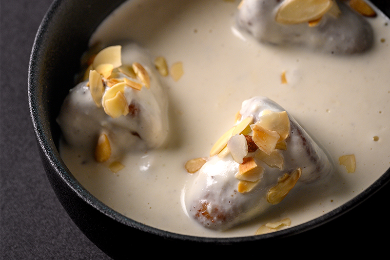 至於「Malai Kofta起司球白咖哩」就比較看人吃,有人愛,有人不愛,因為它完全顛覆你我對咖哩的認知,不僅顏色,連口味也是甜的!Kofta是一種肉丸或肉餅菜餚,在印度多為素食,本道來自喀什米爾的菜餚為塞滿果乾與堅果的Paneer起司與馬鈴薯球,並以綠荳蔻增香,與腰果奶油醬一起妳濃我濃,吃來是甜甜鹹鹹。