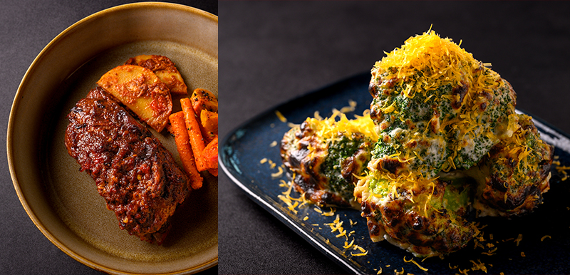 左為錫金的爐烤豬肋排,右為旁遮普的焗烤青花菜。(圖片來源:夏花餐室)