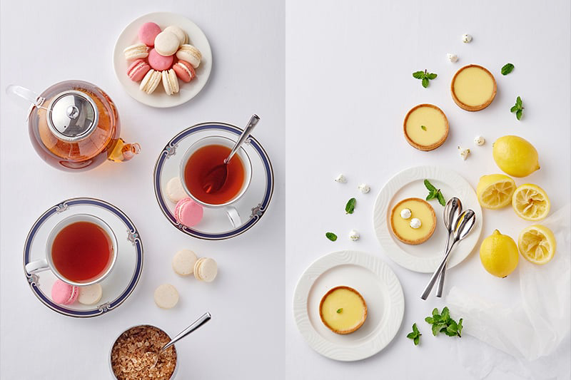 Moment cafe & bakery提供茶飲(左)、檸檬塔等甜點(右),讓下午時光優雅有品味。(圖片來源:台北美福大飯店)