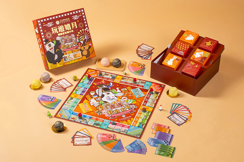 台北花園大酒店、台北天成大飯店等天成飯店集團旗下飯店,今年的中秋月餅禮盒以富饒童趣的「天成餐旅大亨」桌遊為特色,「玩遊嬉月流心酥餅禮盒」不只是提供給您跟家人朋友一起重溫大富翁桌遊的歡樂時光,還能享用搭配奶黃、芝麻、草莓與巧克力芋頭與四款流心酥餅。值得一提的是,只要掃碼包裝裡的QR Code,還能報名參加「天成餐旅大亨挑戰賽」,冠軍還有機會獲得卓越五星瑞穗天合國際觀光酒店一泊二食住宿券。