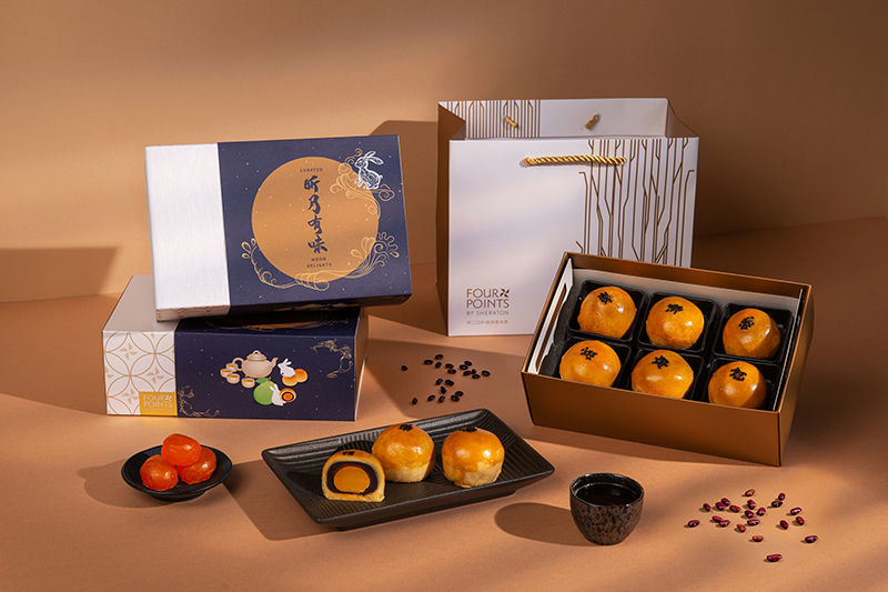 在各家飯店推出創意口味時,林口亞昕福朋喜來登酒店以純手工打造的經典蛋黃酥,帶來實惠、實吃的烏豆沙蛋黃酥禮盒。結合白兔、柚子與滿月形象設計的「昕月有味」,裡頭是純手工一顆顆製作的蛋黃酥;蛋黃酥使用古法紅土醃製的屏東新鮮動福鴨蛋,搭配細緻綿密的烏豆沙,呈現出甜鹹交織、口感豐富的經典風格。