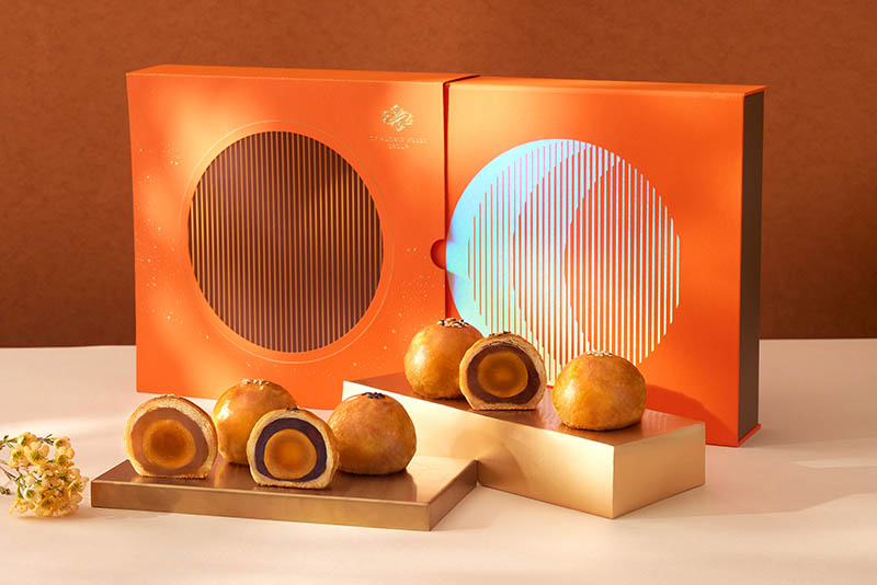 年年推出蛋黃酥禮盒的台北喜來登大飯店,以閃著澄亮光芒的層次月影,呈現出月亮的多種姿態。呼應著月圓的金黃蛋黃酥,選用法國發酵奶油取代傳統酥油,讓酥皮層次更為輕盈香濃,而包覆在裡頭的豆沙蛋黃酥,則在豆沙裡揉合進法國AOP產區的依思尼奶油,襯托蛋黃鹹香風味。除了豆沙蛋黃酥,還有蓮蓉蛋黃酥、XO蛋黃酥共三款風味。