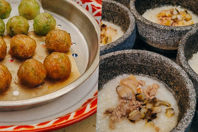 「高宅ใจเกา」2025年7~10月的泰華菜菜單,有西谷米肉丸子(左)和海鮮粥(右)。(圖片來源:細腿男)