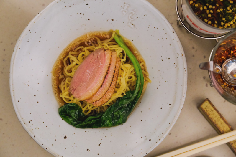 鴨肉乾麵以特選香料滷製鴨胸肉後再切片炙燒。(圖片來源:細腿男)