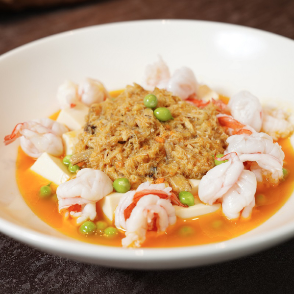 10/1起推出的「蟹馥秋韻」盛宴,風味高雅的「蟹粉鮮蝦豆腐」每份2,480元。(圖片來源:朧粵中餐廳)