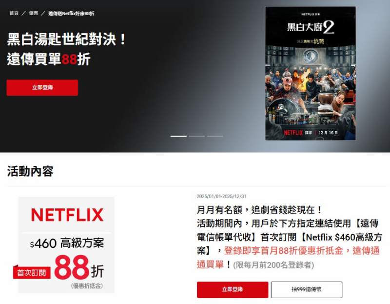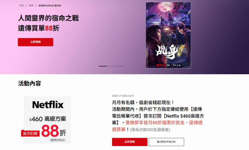 01. Netflix|遠傳買單首訂88折,熱門影集隨時追,價格更親民
