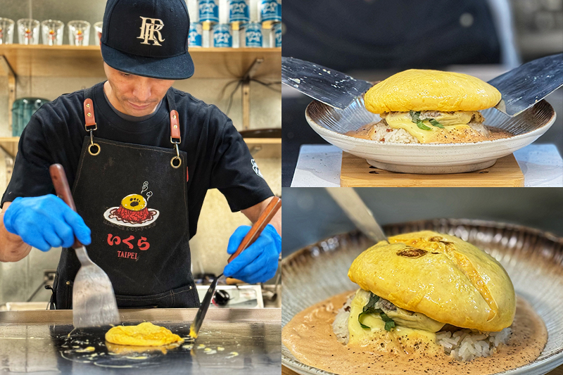 接著,即開始製作歐姆蛋。「Ikura蛋所」福岡店與東京店長動作相當熟練,約28秒炒好一份完美的5分熟歐姆蛋,刀子輕輕一劃,蛋液就流淌而下,非常誘人。日本店長對成品非常挑剔,熟度或外型不夠圓潤,都會重新製作,力求每個元素都是最完美狀態。不過傅珮嘉指出,為了因應台灣有些長者、小孩或孕婦不敢吃太生的歐姆蛋,只要提前告知就可調整熟度,只是熟度高,蛋液滑順程序就會受影響。
