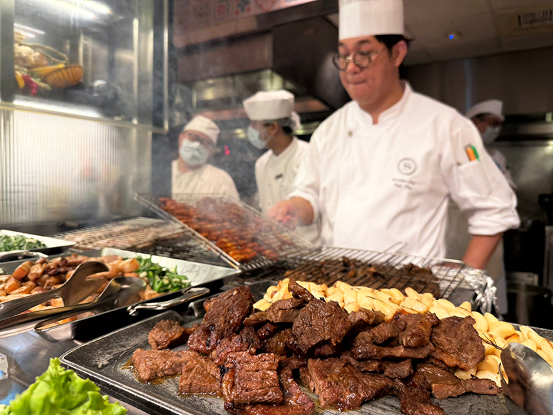 韓式烤肉區看到滿滿的好肉,加上現場燒烤,香氣讓人口水直流。(圖片來源:Sid)