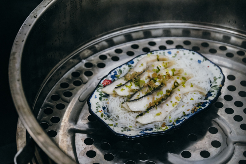 以湧泉活水養殖的鱘龍魚,配上全分之百的純米米粉,一打開蒸籠就香氣四溢。(圖片來源:細腿男)