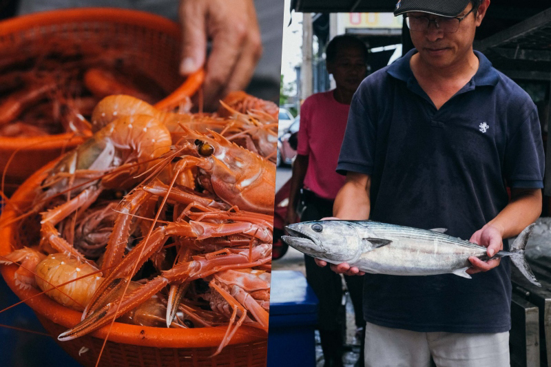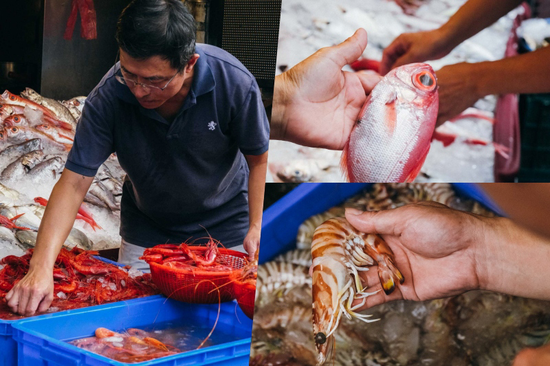 除了買魚,就連一整籃的蝦子張博勝也是一隻隻親手挑選確保夠新鮮。(圖片來源:細腿男)