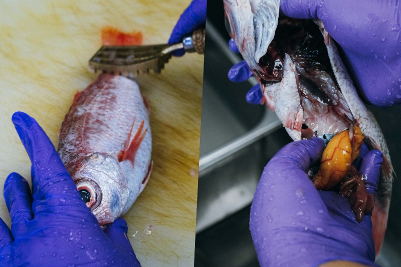 買回來的魚,交由廚房工作人員迅速去鱗、清掉內臟保存。(圖片來源:細腿男)