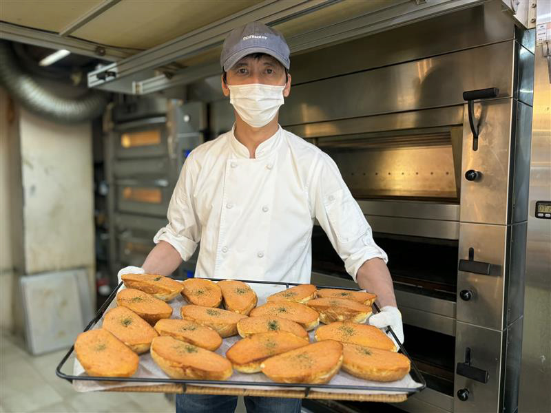 纖維較細的麵包也有缺點,「如果麵包太濕就會吸油,我取的是中間平衡」,因此他們在開發過程不斷試吃,就連店內的師傅、辦公室等人員都會一起加入試菜,成就一款即便冷掉再回烤,吃完整顆都不會感到油膩,但仍保有明太子奶油鹹香滋味的明太子麵包。