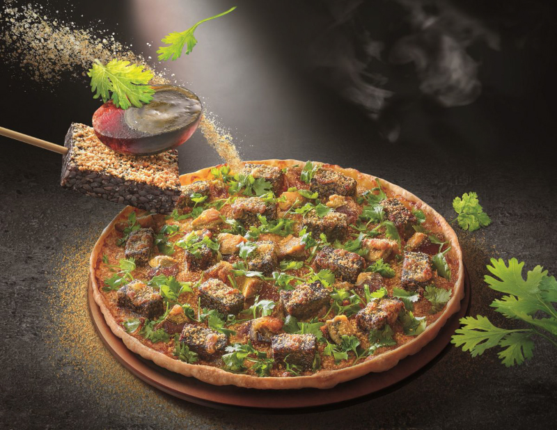 這一年還有另一款香菜豬血糕五更腸旺比薩也是新推出,想像香菜、豬血糕和五更腸旺,這幾種重口味美食做成比薩的風味,濃郁鮮香令人大呼過癮!