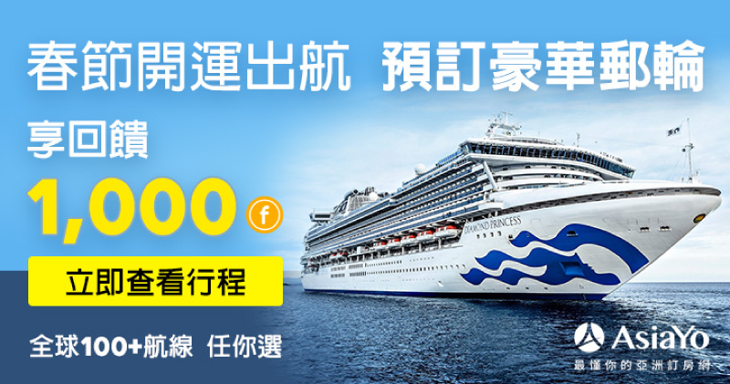 遠傳用戶福利12月亮點1:春節開運出航 豪華郵輪享1,000遠傳幣回 饋