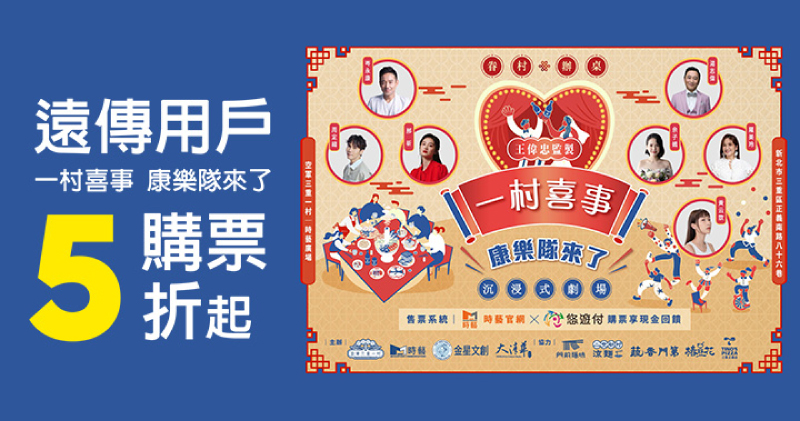遠傳用戶福利12月亮點4:《一村喜事:康樂隊來了!》沉浸式舞台劇購票優惠5折起