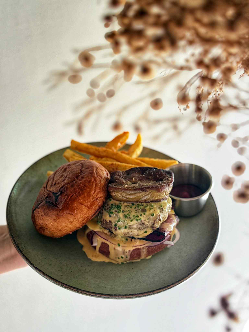 團隊將Fine Dining的食材與料理態度,以早午餐的形式呈現,焦糖洋蔥醬、荷蘭醬、切達起司醬、波特牛骨醬是風味恰到好處的醬汁,班尼狄克蛋中使用的水波蛋則透過三種不同的溫度處理來達到合適的出餐狀態。透過低溫烹調、氮氣打發等現代料理技法增進食物質感 ; 對溫度、火侯不厭其煩的精準掌控以達到更加口感。