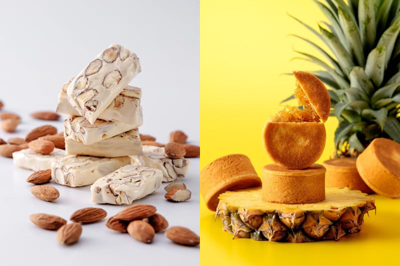 國聯大飯店裡的「板石Slate」職人西點,今年推出多款伴手禮選擇,杏仁牛軋糖有著一吃就想回購的魅力,選用飽滿的整顆杏仁果,沒有黏牙困擾,每一口都是優雅的乳香與堅果香。另外,以在地八卦山土鳳梨與金鑽鳳梨製作的國聯臻藏旺來酥,佐以冬瓜餡慢火熬煮,酸甜比例拿捏得宜,果香飽滿,清爽不膩,外皮的起司香與淡淡奶香更讓人第一口即圈粉,收到這個好禮的人一定很開心。