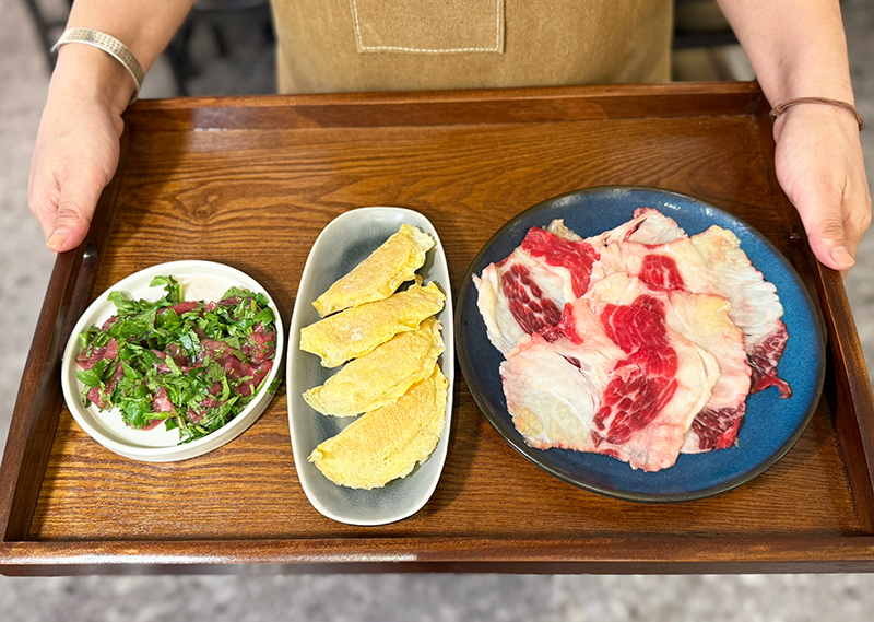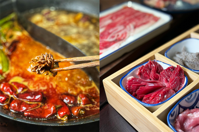 台灣首店更推出限量台灣牛系列,包含脆胸(450元)、吊龍(500元)與上腦(500元),選用現切溫體牛上桌,建議可搭配紅湯涮煮,讓牛肉的鮮甜肉汁與川味麻辣香氣完美交融,展現專屬於台灣市場的雙重風味魅力。一定要點「台灣牛脆胸」,其為牛脆胸中段,看起來油花甚多,但涮煮後不僅有豐厚的油脂芬芳,還有獨特的爽脆咬勁,乃是許多食客心中的夢幻逸品。