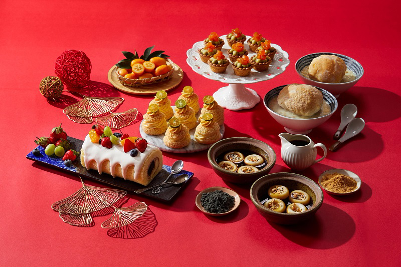 廚藝團隊也發揮創意翻玩客家元素,「桔香柿餅番茄沙拉」將柿餅與番茄串成清新組合,再以桔醬美乃滋賦味。甜點區則變化出「仙草奶凍卷」、「桔醬奶油泡芙」、「柿餅擂茶塔」等西式甜點,甜蜜誘人,充滿驚喜。外觀像是牛隻泡在水裡而得名的「牛汶水」則是傳統點心代表,軟Q香甜。