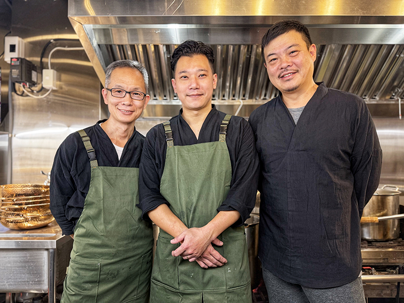 三味鍋府老闆陳易松(左)與其廚藝團隊羅阿明師傅(右)、蕭家勳師傅(中),共同為美味把關,提供好品質鍋物。(圖片來源:Sid)