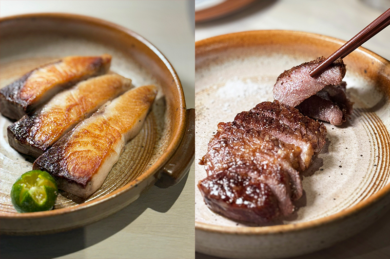 左為鐵板龍膽魚排,右為鹽之花鐵板雪花和牛。(圖片來源:Sid)