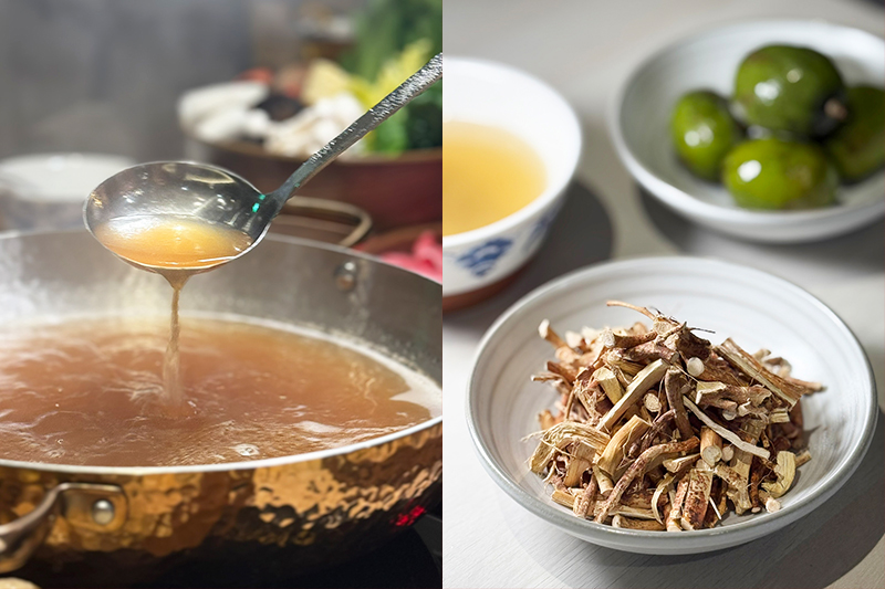 左為三味鍋府的原味上湯,右前為五指毛桃,後為石橄欖,是為三味。(圖片來源:Sid)