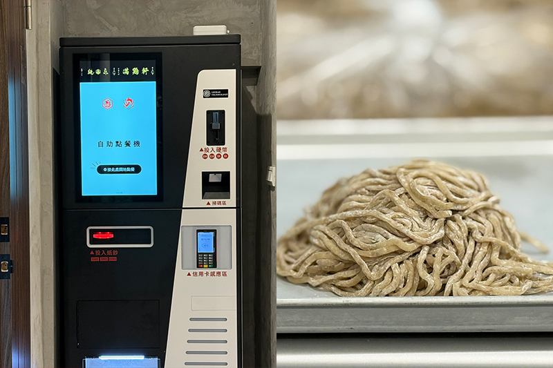 「麵魚」與「滿雞軒」採現場排隊入場。圖右則是「虎軒製麵」客製的其中一款麵體。(圖片來源:Sid)