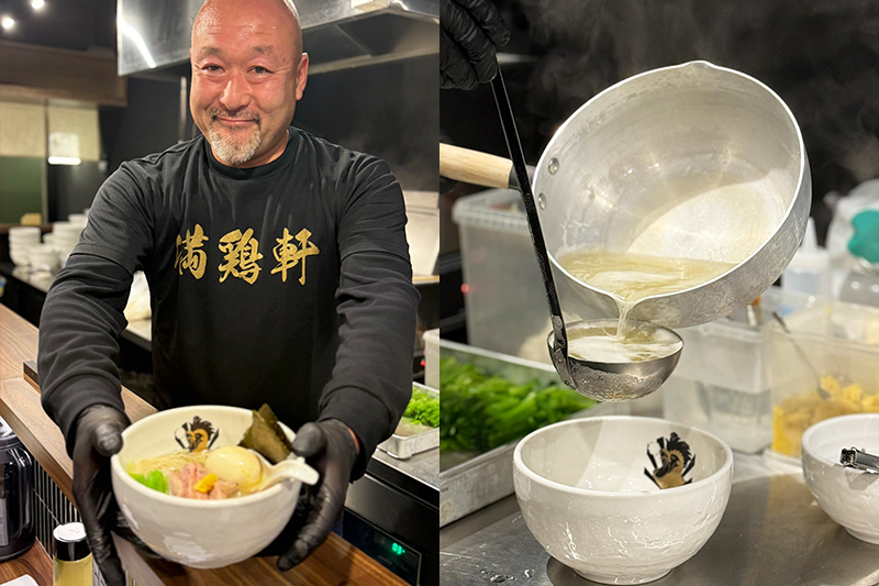 有別於大眾熟悉的雞白湯或豚骨系,「滿雞軒」以罕見的「100% 鴨高湯」為主要特色,突顯了橋本社長勇於嘗試的鮮明個性。不過,是不是覺得有些疑惑,為何以雞為品牌名稱,但湯頭卻以鴨為訴求,其實就在於日本的「滿雞軒」,除了以鴨為常規湯底外,常會以期間限定形式,推出如名古屋土雞、雉雞等特殊雞種的湯底,讓客人可以吃到平時生活中少見的獨特風味。