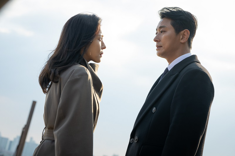 闊別螢幕許久的河智苑在《權慾之巔》中展現了完全不同於以往動作女王的風采,她飾演的角色身處男性主導的權力核心,卻憑藉著驚人的直覺與謀略在夾縫中建立起自己的帝國。河智苑的表演極具層次,她可以前一秒在酒宴上優雅地舉杯,下一秒就在私下對峙中流露出令人不寒而慄的狠勁。這個角色最迷人的地方在於她的不穩定性,你永遠猜不到她的底線在哪裡。她與朱智勛之間的關係並非簡單的敵對或盟友,而是一種基於利益的、隨時可能崩塌的智力博弈。