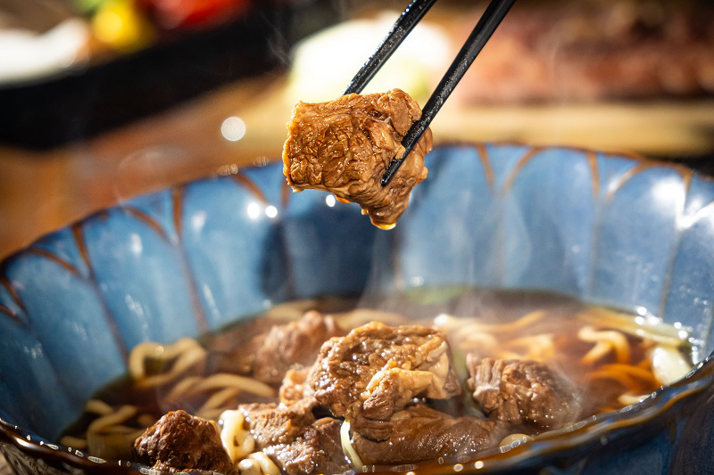 家傳牛肉麵湯頭清香,加一點辣椒風味層次更豐富。(圖片來源:異塵 CELLAR LOUNGE BAR)