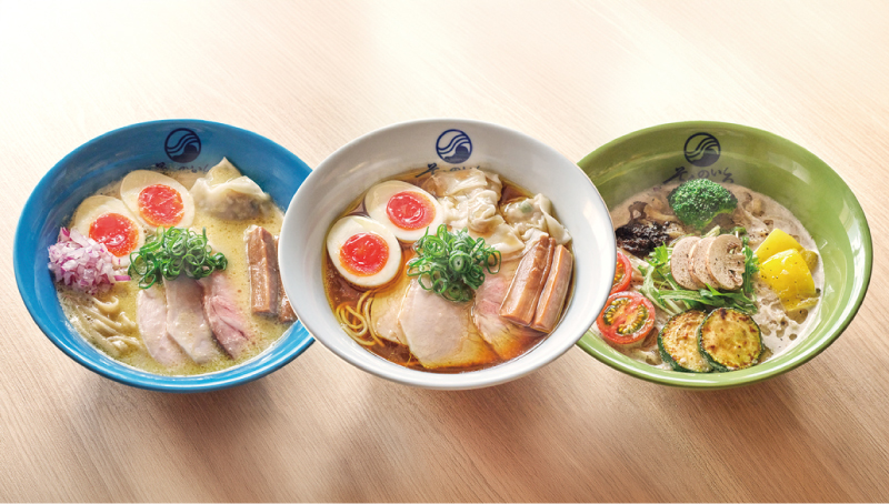 以推廣多元飲食文化為基礎打造的「そらのいろ SORANOIRO」,麵碗有著如天空般的藍色,碗內的拉麵以純素(Vegan) 與 無麩質(Gluten-free)為概念,並以蔬菜為主角的風格打造。招牌的「ベジソバ」以蘑菇為基底,帶來濃郁卻不失平衡的湯頭美味。