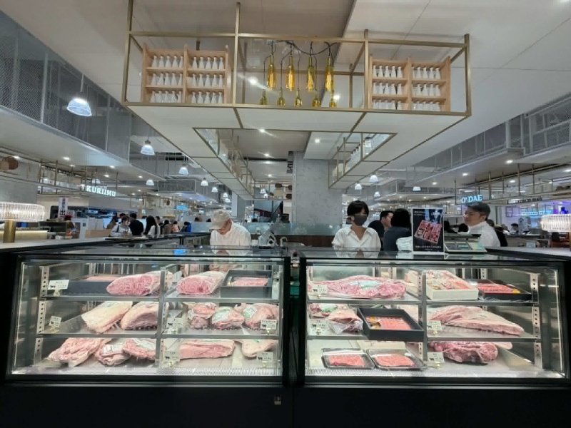 豊漁集團除了帶來門檻親民的 OMAKASE 天婦羅割烹品牌,也在 B1 美食街區打造零售肉舖「和庵 精肉舖」。首度跨足零售的「和庵 精肉舖」,每個月進口約30頭日本A5黑毛和牛,消費者可以從100克開始彈性選購 13 種和牛部位,目前開幕推出限定的「六宮格A5和牛禮盒」,原價 2,880 元的頂級組合,開幕期間驚喜價只要 999 元,每日限量10 盒。