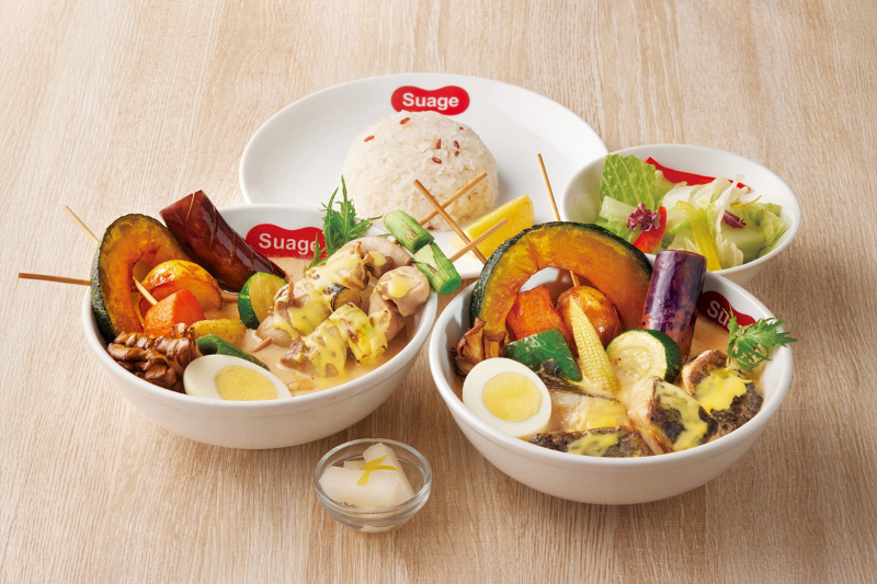 可以喝的咖哩在這裡!源自札幌的北海道Suage湯咖哩,自2021年引進台灣即相當受歡迎。招牌的原味湯咖哩是以特製洋蔥泥、特製高湯、綜合香料、嚴選馬薩拉香料等熬煮基礎湯底,由日本北海道直接進口來台,在台灣店鋪內再添入秘製香料油與羅勒而成。搭配食材不沾裹粉漿的「素炸」、每碗吃得到多達10款蔬菜等特色,每碗吃來飽足又營養。