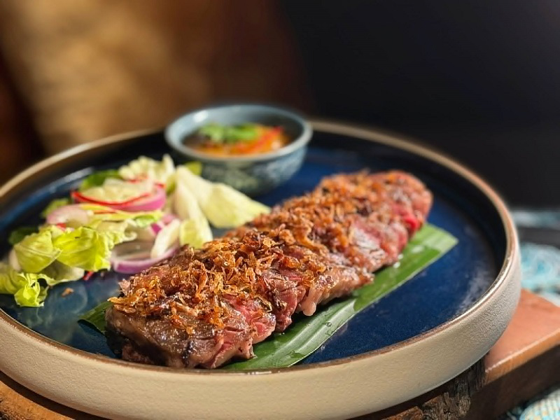 台北喜來登大飯店SUKHOTHAI「暹羅宋干」饗宴之炭烤和牛佐泰式香料辣醬。(圖片來源:Sid)