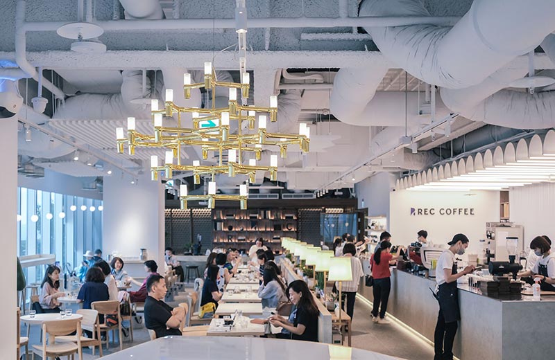 REC COFFEE台中旗艦店設在高樓層,空間舒適、視野寬闊。