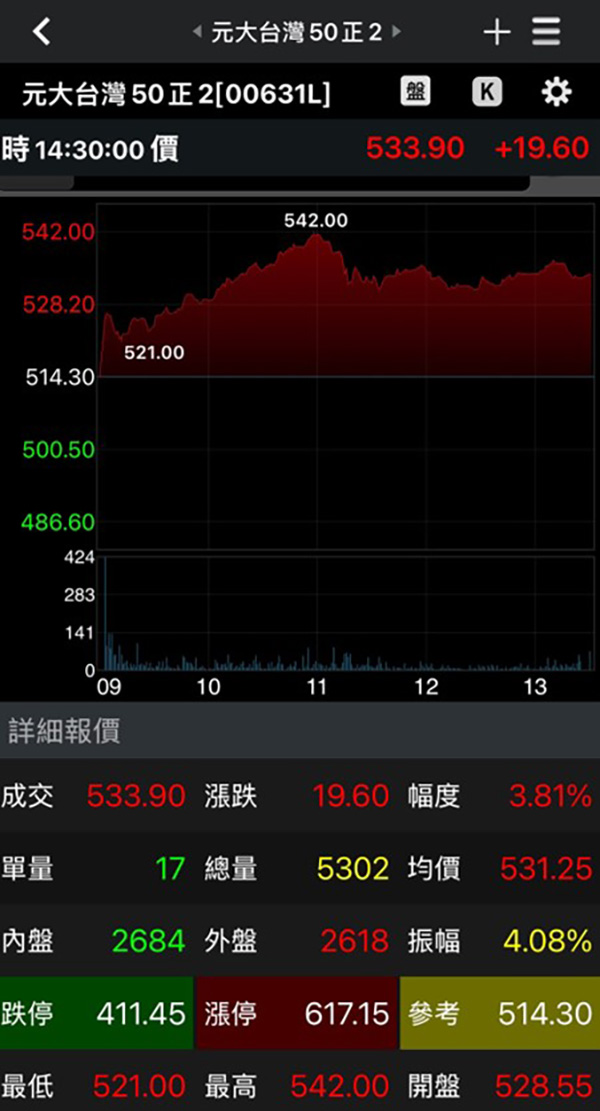 00631L分割案通過,象徵台股槓桿投資進入更親民的新里程碑。(圖片來源:看盤軟體)
