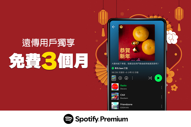 (Spotify Premium優惠方案前3個月免費優惠期間之後,每月實際扣款金額以Spotify台灣官方公告為主)