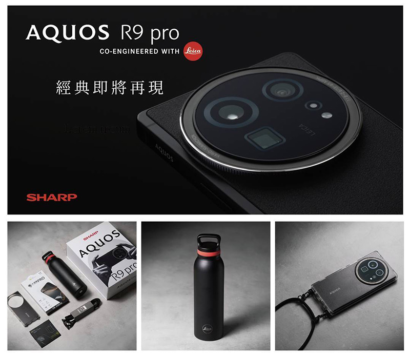 SHARP AQUOS R9 pro是夏普即將在2025年1月9日推出的新機,售價為新台幣39,990元,配備三組鏡頭構成、徠卡加持的「Vario-Summicron」相機系統,三個鏡頭均採用5,030萬畫素感光元件,其中廣角鏡頭為1/0.98吋感光元件,超廣角提供122度視角拍攝並支援微距攝影,長焦鏡頭支援2.8倍光學變焦拍攝,搭配數位變焦可帶來20倍變焦能力。