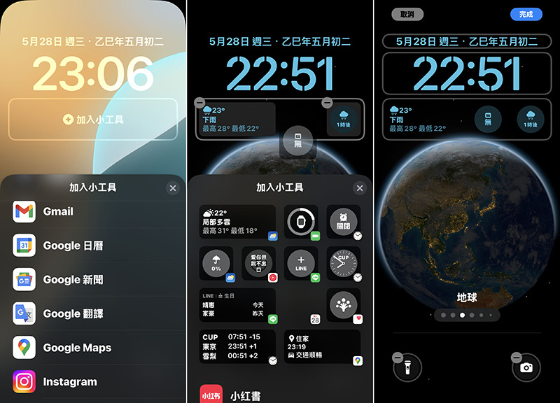 除了能在鎖定畫面配置小工具,當然也可以進行編輯,以下我們用「天氣」小工具示範。