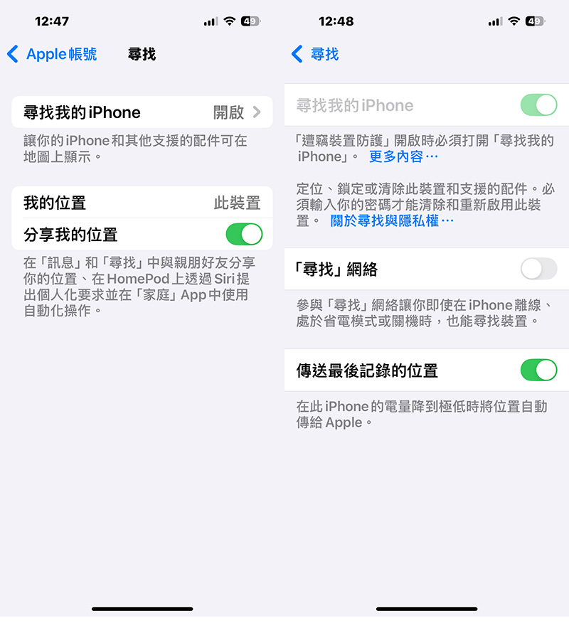 1. 「設定」→「你的名字」→「尋找」→「尋找我的iPhone」